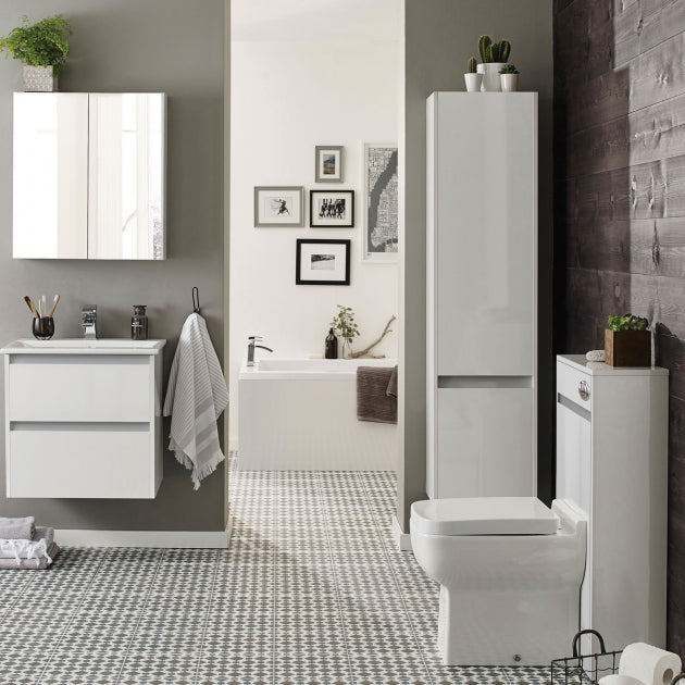 The Kartell City Wall Mounted Tall Cabinet is a sleek and functional storage solution for your bathroom. Measuring 1600mm in height and 350mm in width, this cabinet is designed to be wall-mounted, which not only maximizes space utilization but also creates an illusion of a more spacious bathroom. The cabinet comes in a sophisticated Gloss White finish, adding a touch of elegance to your bathroom decor. It features two soft-closing doors with integrated handles, ensuring smooth and quiet operation while providing easy access to your belongings. Kartell offers a 2-year guarantee with peace of mind regarding its durability and performance.