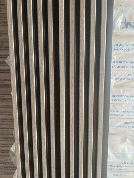 Decorative PVC 5 Slat Panel – White Ash on Wood 122x12x2900mm