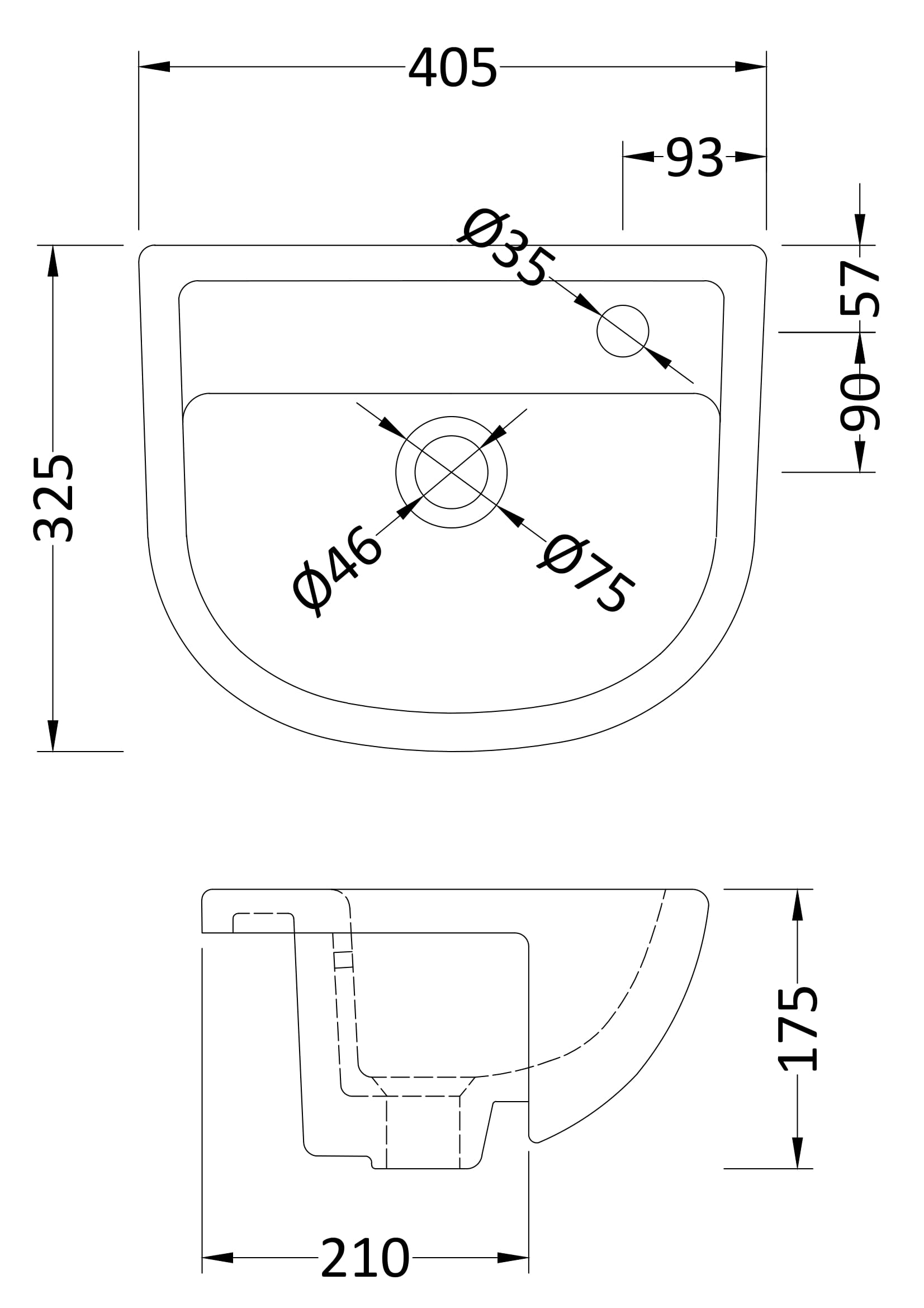 - Inner Bowl Dimension - Depth 205 mm