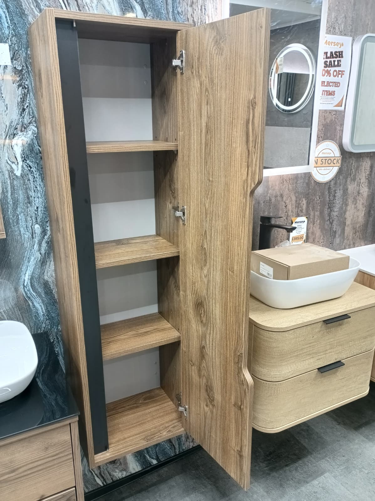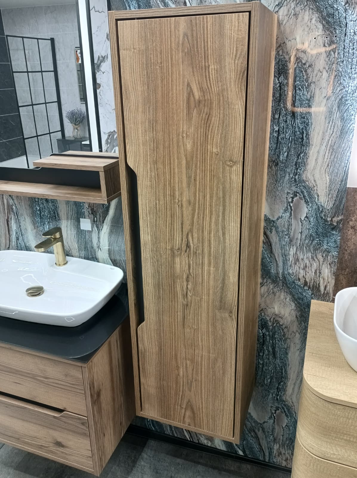 Finished in the beautiful Lydia wood effect, it adds warmth and texture to your space while keeping your essentials neatly organised and within reach.