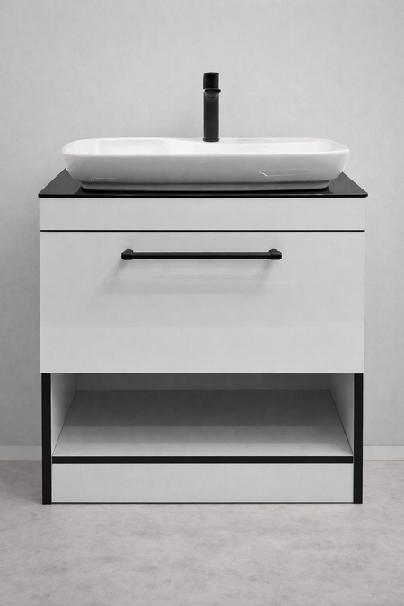 This unit comes complete with a stylish glass worktop and a ceramic basin with a single tap hole, providing a sleek and practical washing area. The single spacious drawer offers convenient storage for toiletries and bathroom essentials, helping to keep your space organised and clutter-free.