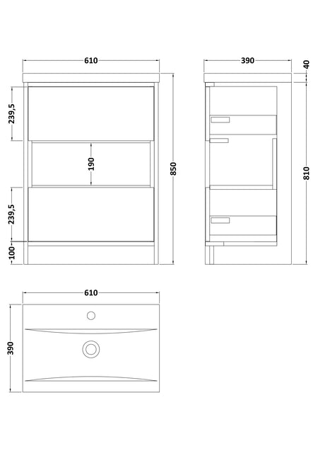 HR Coast Floor Standing 2 Drawer 1 Shelf Vanity Unit with Mid-Edge Ceramic Basin 600mm