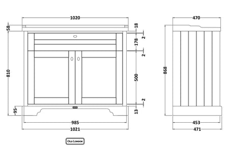 HR Floor Standing 2 Door Vanity Unit with 1 Tap Hole Ceramic Basin 1000mm