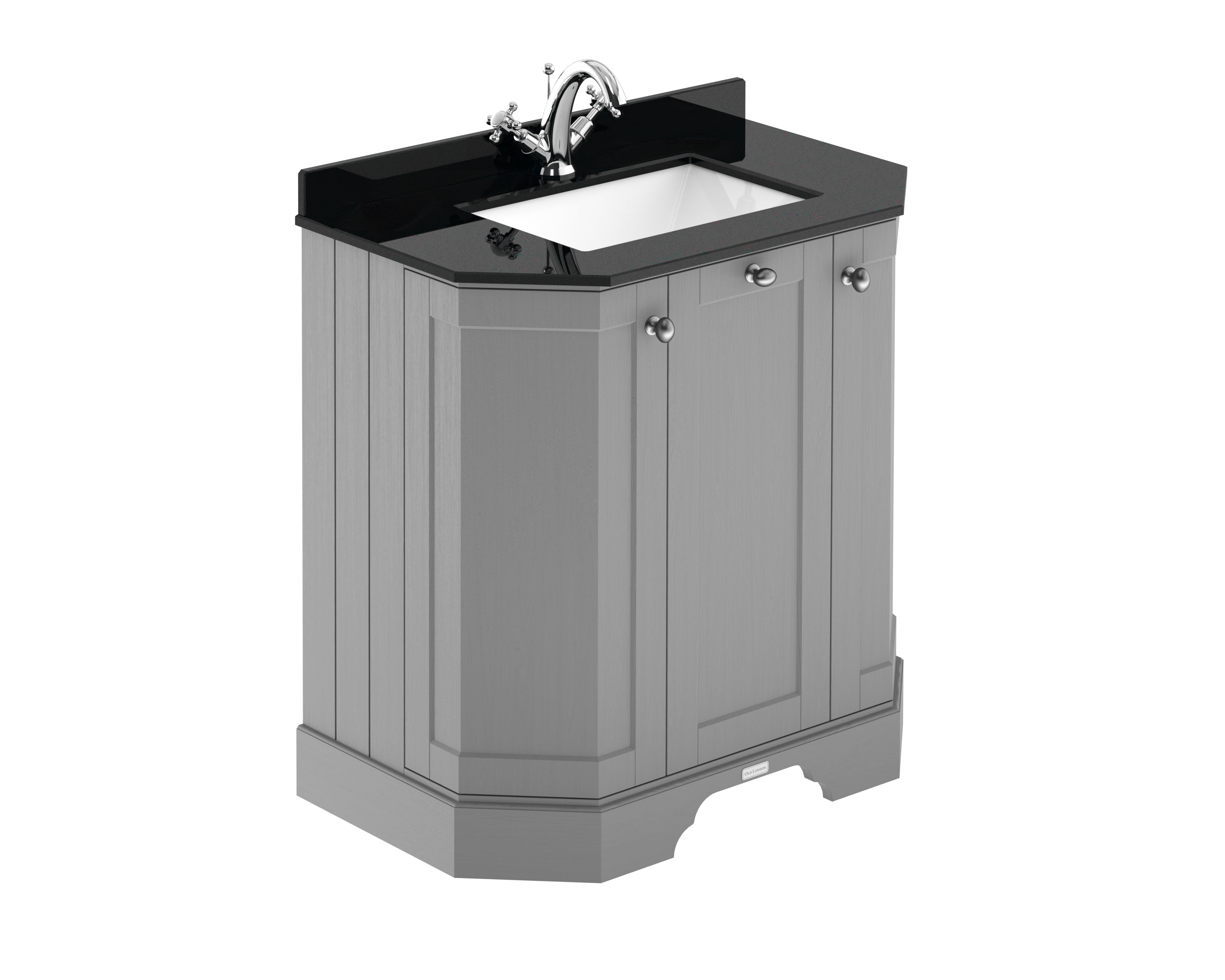HR Floor Standing 3 Door Angled Vanity Unit with 1 Tap Hole Black Marble Top 750mm