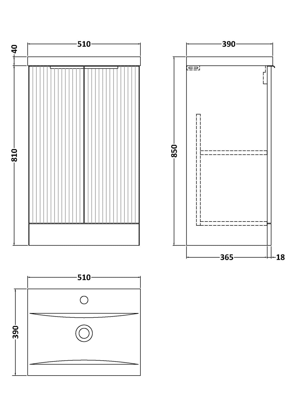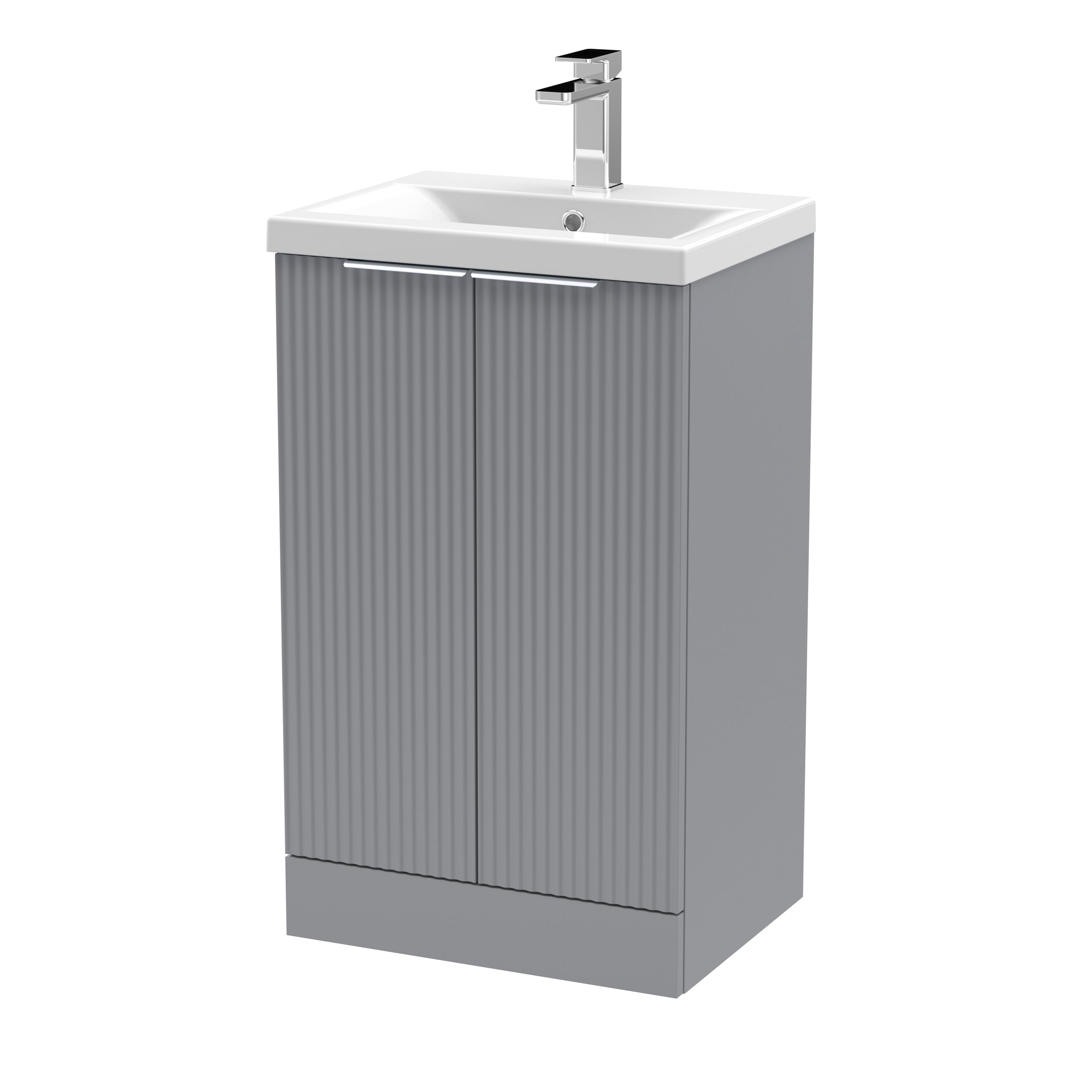 HR Fluted 500mm Floor Standing 2-Door Vanity and Mid-Edge Basin