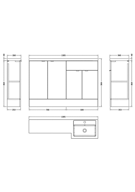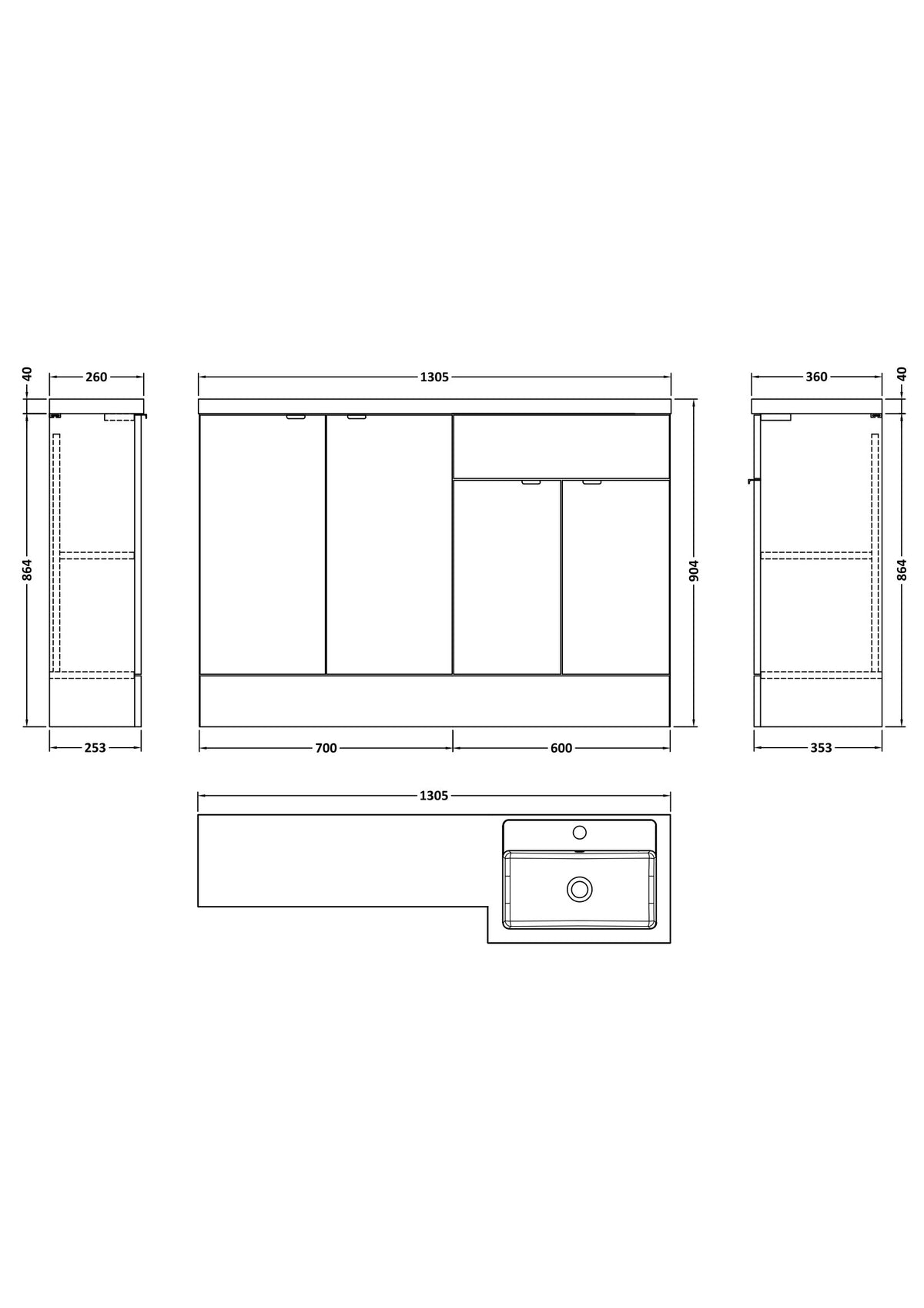 HR Fusion Floor Standing 4 Door Vanity Basin Right Hand Combination 1200mm
