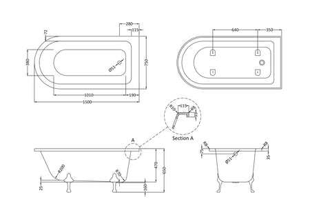 - All baths come supplied with leg sets as standard