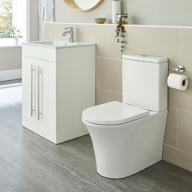 Kameo Round Rimless Fully Back to Wall Close Coupled Toilet With Cistern And Soft Close Seat