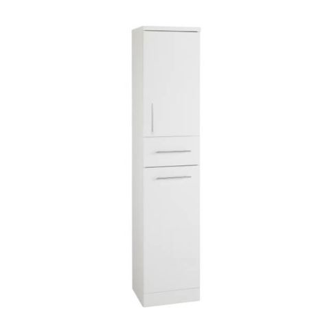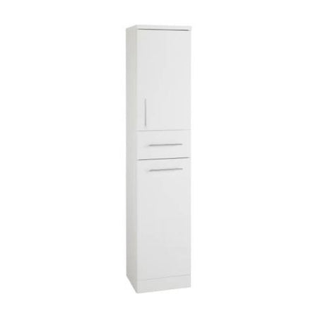 Kartell IMP350TU K-Vit Impakt 350mm W X 300mm D X 1900mm H Tall Cabinet Storage Unit. This Kartell Impakt 350mm Tall Cabinet Storage Unit offers convenient storage space in a modern style, suitable for any bathroom with its glossy white finish, ideal for contemporary bathrooms. Featuring double doors and a single drawer, both equipped with soft-close hinges or rollers to prevent slamming and damage, this unit ensures smooth operation. With dimensions of 1900mm in height, 350mm in width, and 300mm in depth, it provides ample storage without taking up too much space. Finished in bright gloss white to create an illusion of spaciousness, this unit offers a practical storage solution. Supplied fully assembled and backed by a two-year manufacturer's warranty, it provides complete peace of mind.
