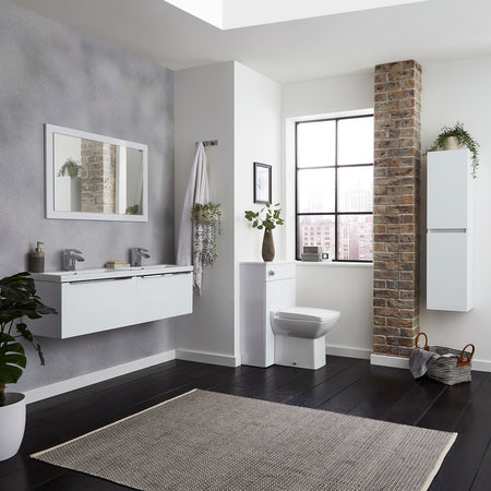 Crafted to merge functionality with storage, this wall-mounted unit in glossy white seamlessly integrates into contemporary bathroom layouts. Proudly made in Britain, it upholds standards of superior craftsmanship and meticulous attention to detail.