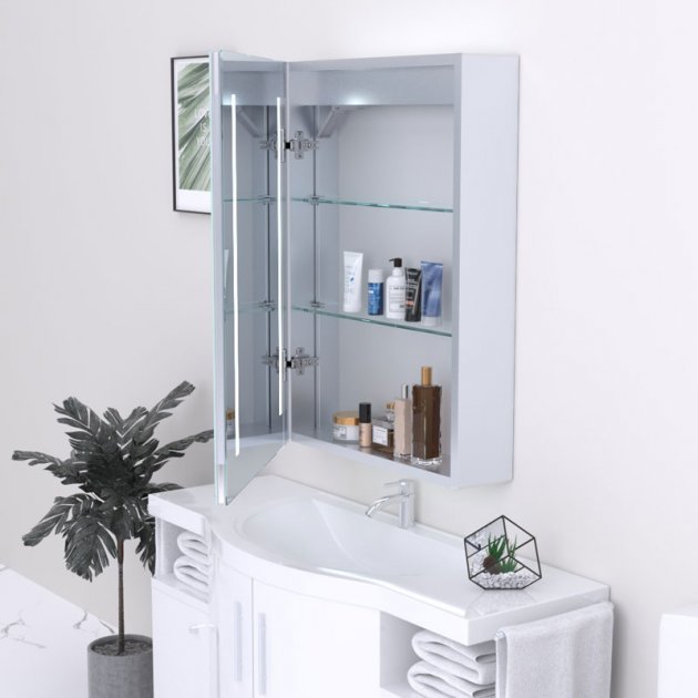 PRODUCT FEATURES: Crafted By Kartell Manufacturer Product Code: MIR102 Constructed From Aluminum Alloy Designed for Wall Mounting Contemporary Rectangular Design Includes Reflection Mirror Equipped with Sensor Switch Features Double-Sided Mirror Door Comes with 2 Glass Shelves Includes Charging Socket for Shaver Or Toothbrush Equipped with Demister Pad Enhanced with LED Illumination IP44 Rated for Water Resistance Simple Installation Process Backed by a 3-Year Guarantee