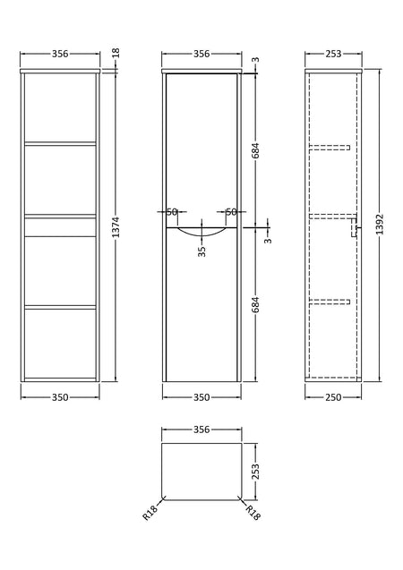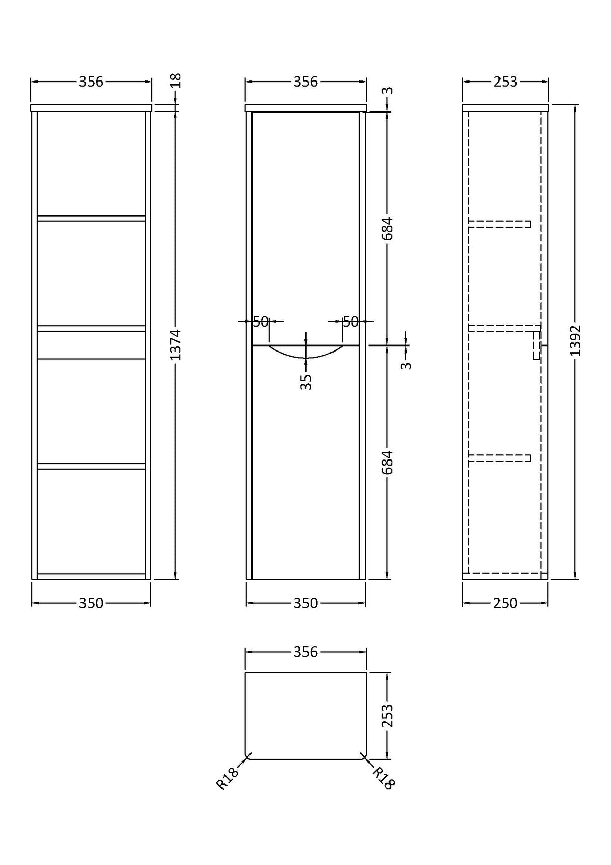 Lunar Wall Hung 2 Door Tall Unit, 356mm