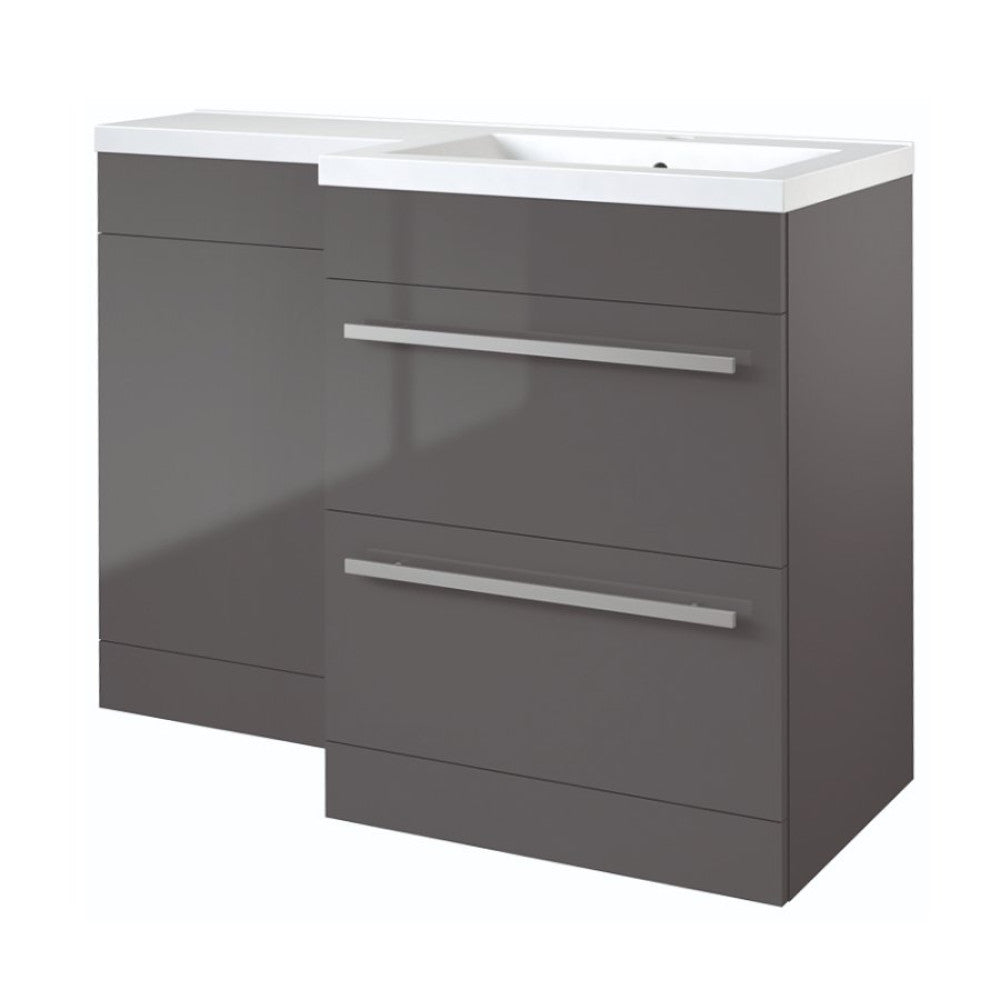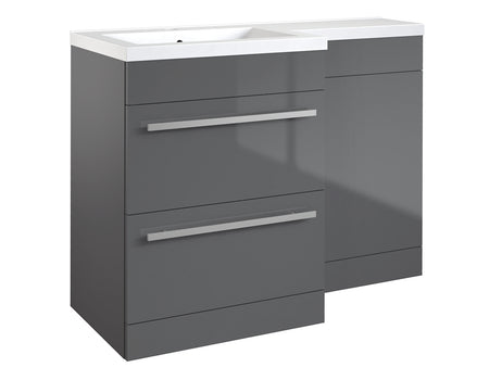 Matrix 1100mm Storm Grey Gloss 2 Door L Shaped Combination Basin WC Unit - Left Hand