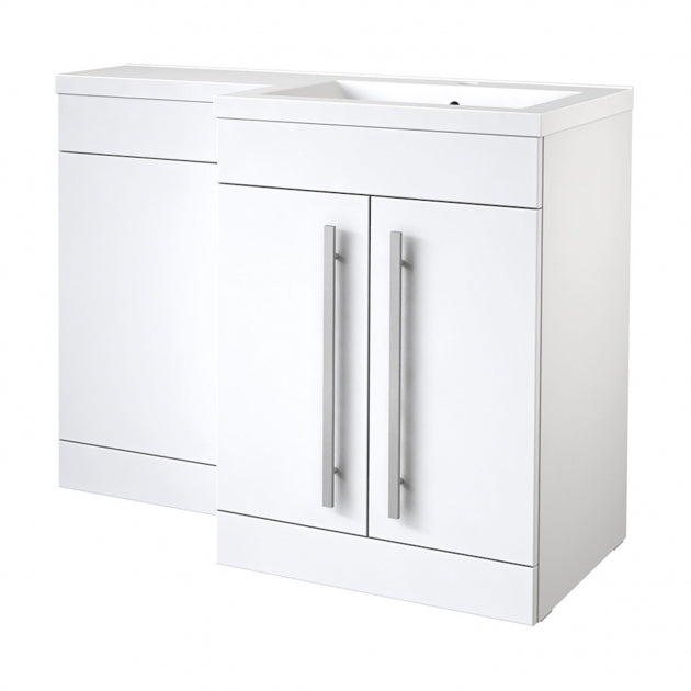 Matrix Left Handed 2 Door Combination Unit with L Shape Basin 1100mm Wide - White