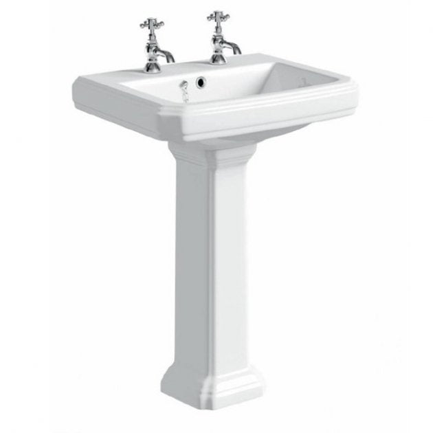 Prestige Astley Basin with Full Pedestal 600mm Wide 2 Tap Hole