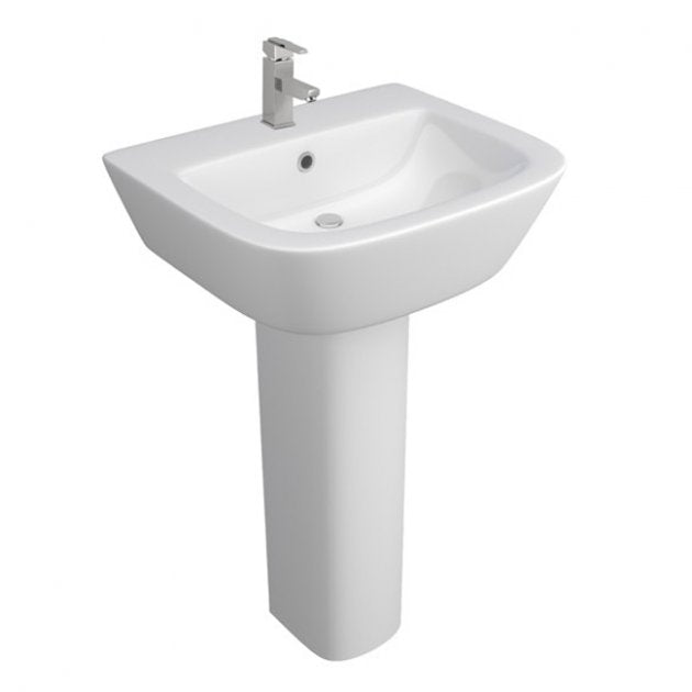Basin Type: Full Pedestal Basin Shape: Square Tap Holes: 1 Tap Hole Location: Central Includes Overflow: Yes Total Height: 865mm Width: 538mm Projection: 449mm Bowl Height: 135mm Bowl Width: 460mm Bowl Projection: 290mm Wall to Waste Outlet: 180mm Wall to Tap Hole: 60mm Brand: Prestige Collection: Project Round Style: Modern Material: Vitreous China Color: White Market: Domestic Manufacturer Part Number(s): POT867PR+POT453SE