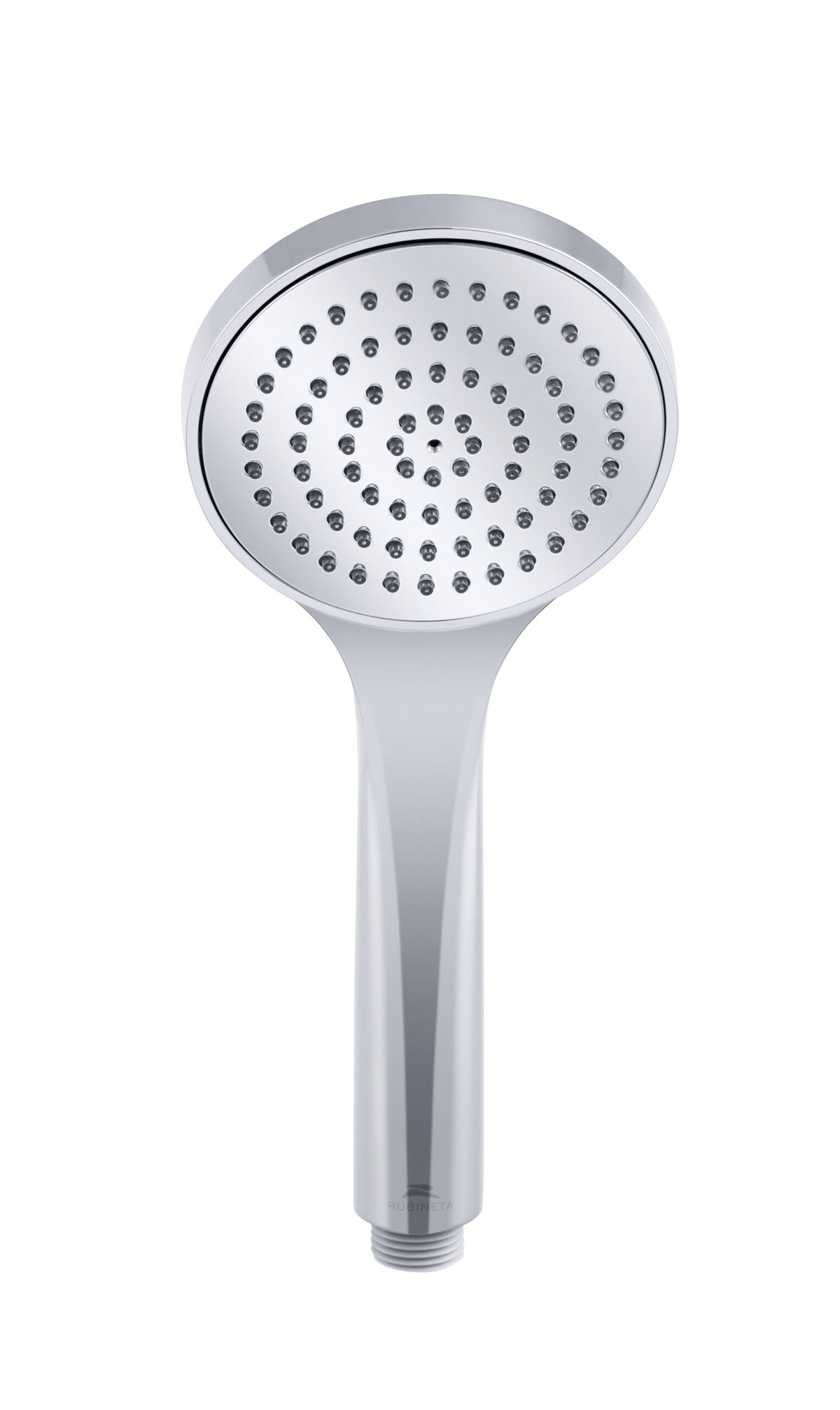 Sleek and functional, the Solo handshower from Rubineta features a chrome-plated finish and anti-lime protection for long-lasting use. With a single spray function and 100 mm diameter, it offers a simple, effective shower experience.