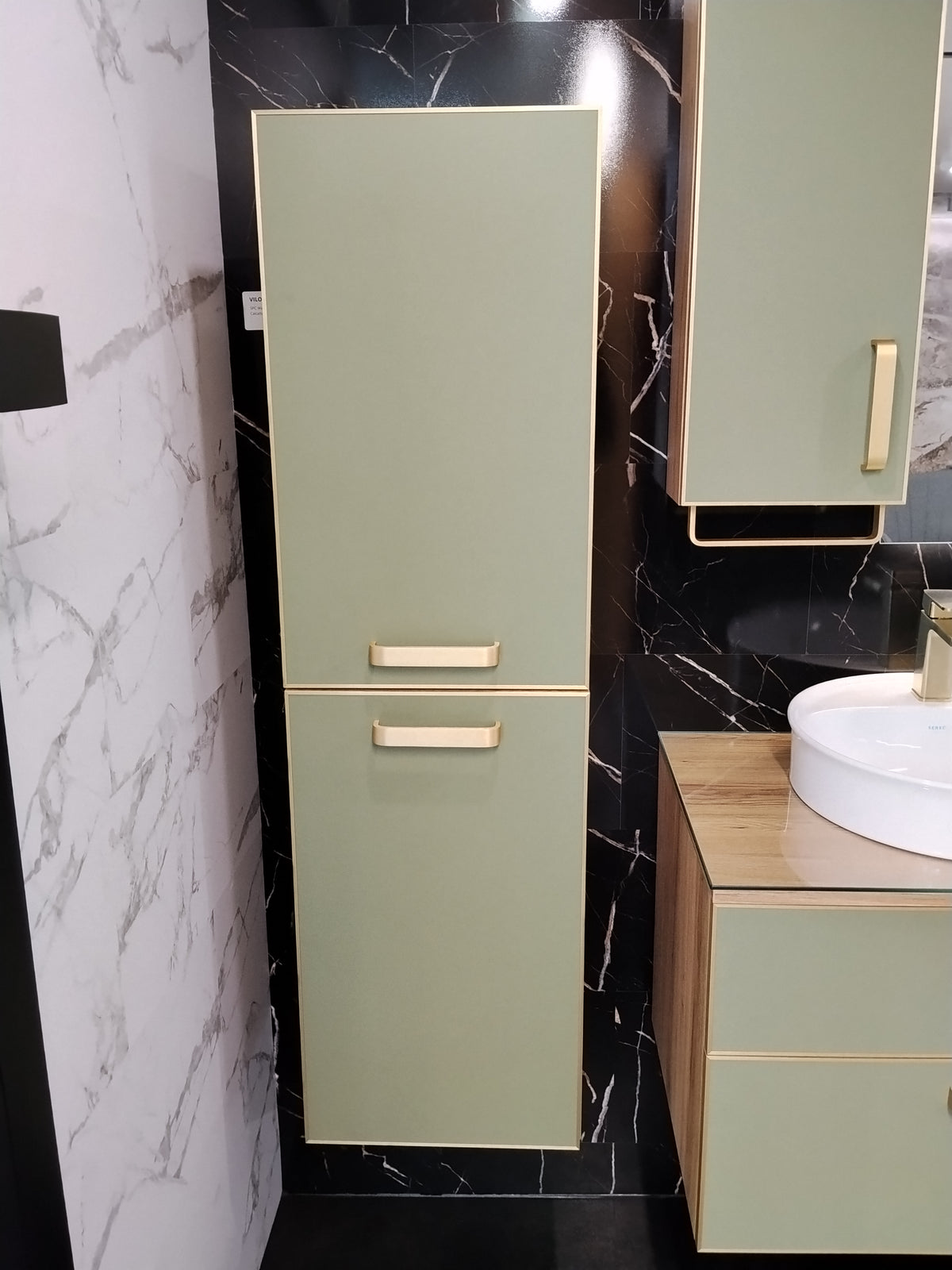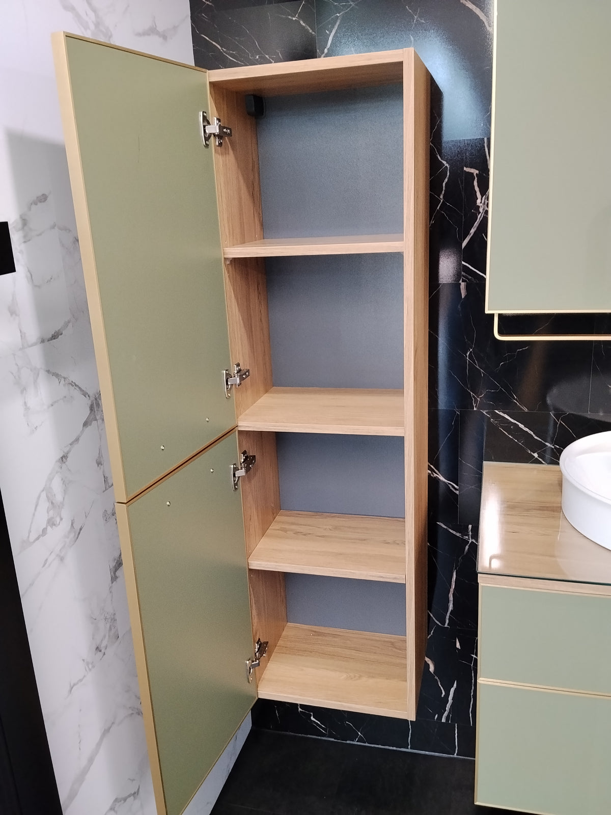The Salerno Tall Storage Unit in Matt Sardinia Green is a refined storage solution designed to bring elegance, colour, and functionality into contemporary bathrooms and living spaces. Finished in a rich Sardinia green with elegant gold accents, this unit creates a sophisticated statement while remaining timeless and versatile.