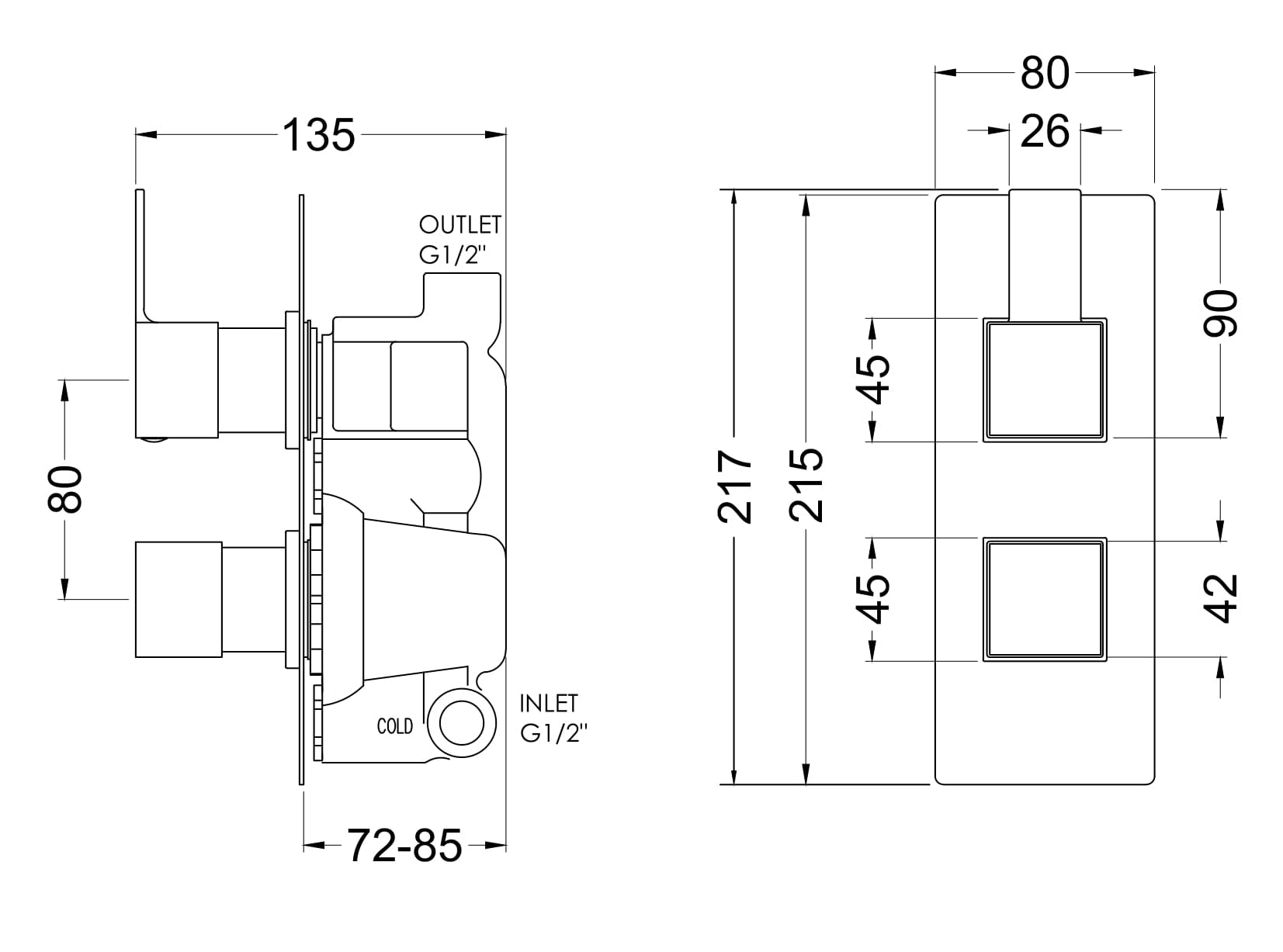 - Full thermal protection to prevent scalding in the event of hot or cold water shut off