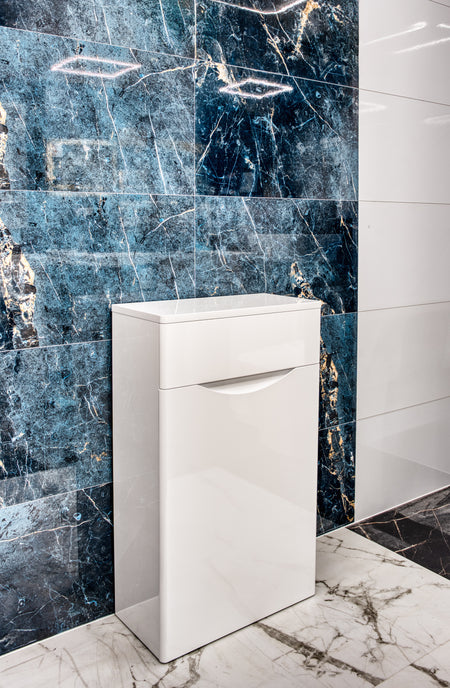 Its sleek White Gloss finish reflects light beautifully, brightening your space and blending seamlessly with contemporary bathroom furniture. The compact dimensions ensure it fits perfectly in both small and large bathrooms, offering a clean, streamlined appearance without taking up unnecessary space.