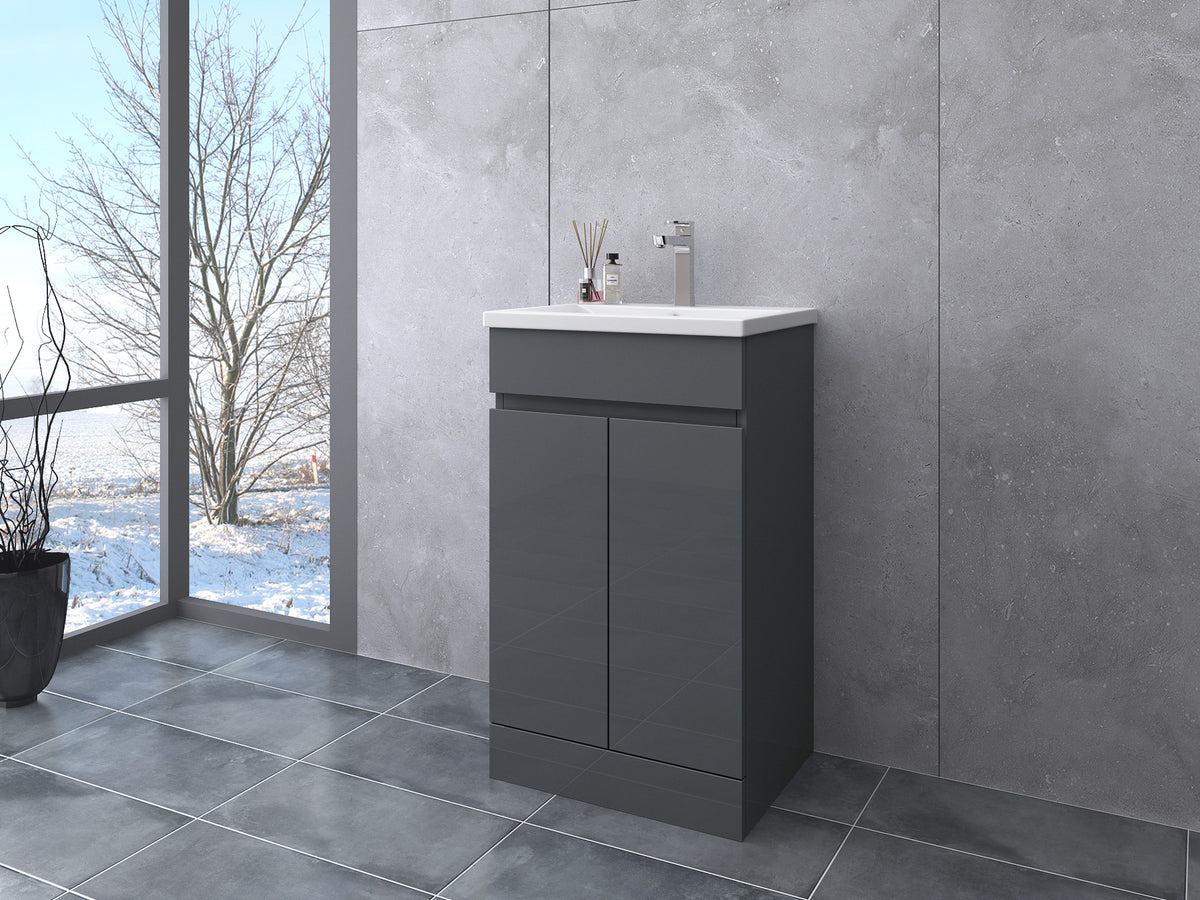 The two-door design provides convenient storage for toiletries and bathroom essentials, while the smooth, easy-to-clean surface makes maintenance effortless. Available in Grey Gloss and White Gloss, the unit is designed to match seamlessly with the full Vega Gloss furniture range, allowing for a coordinated bathroom design.