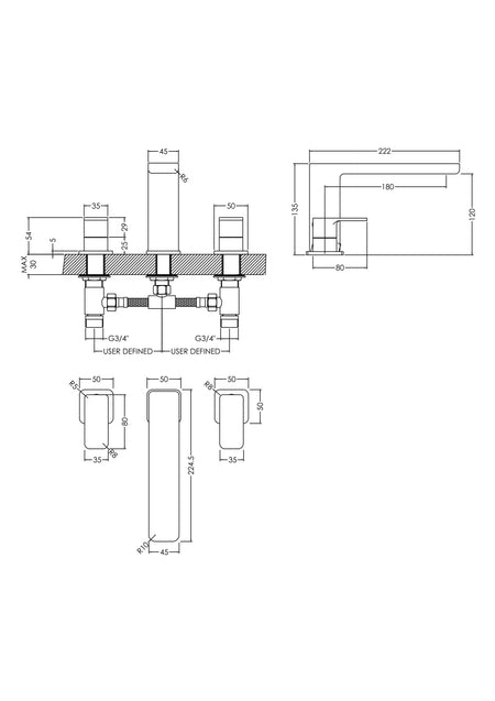 Windon Deck Mounted 3 Tap Hole Bath Filler